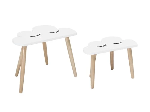Alice’s Garden Tables Et Chaises Enfant Table Ronde Et Deux Tabourets Pour Enfants Naturel Blanc