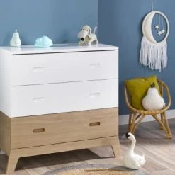 Nateo Concept Commodes Enfant Commode 3 Tiroirs Blanc Et Chêne
