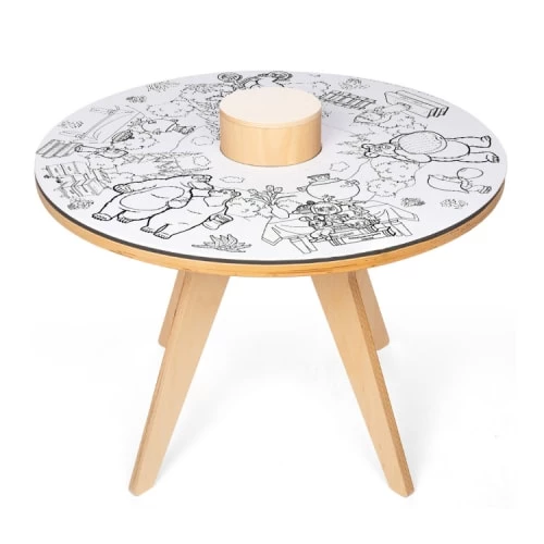 Optez pour la plus jolie (et ludique) des tables en bois pour enfants ! Cette table pour enfant est bien plus qu’une simple table. C’est une table à dessiner intelligente, avec un design minimaliste et scandinave, inventé et créée pour les enfants ! Les enfants peuvent dessiner sur leur table, facilement accessible car elle est à leur hauteur (H48cm). Elle a un diamètre de 70cm.