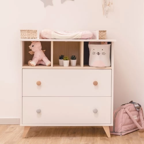 Sauthon Commodes Enfant Commode 3 Tiroirs Couleur Bois Et Blanc