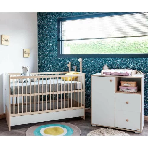 Sauthon Commodes Enfant Commode 3 Tiroirs Couleur Bois Et Blanc