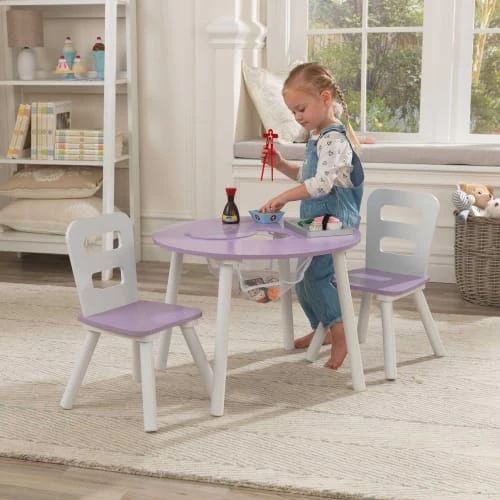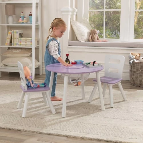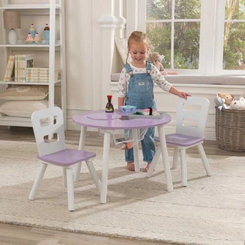 Alice’s Garden Tables Et Chaises Enfant Table Ronde Et Deux Tabourets Pour Enfants Naturel Blanc