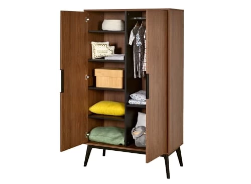 Des pieds en hêtre massif français certifiés PEFCmmode 3 tiroirs de la même collection. L’armoire 2 portes VINTAGE est équipée de fermetures de portes avec freins et de poignées design noir matte.