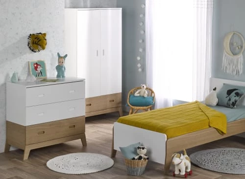 Chez Nateo Concept, nous portons une attention toute particulière à la qualité de nos produits. Avec sa peinture blanche à l’eau sans solvant ni Composant Organique Volatile (COV) et ses panneaux écologiques à faible taux de formaldéhyde, ce meuble de chambre enfant assure des nuits confortables en toute sécurité.