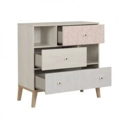 Sauthon Commodes Enfant Commode 3 Tiroirs Couleur Bois Et Blanc