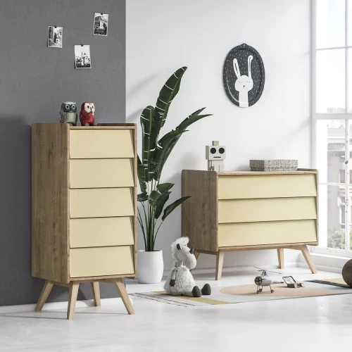 ID Kids Commodes Enfant Commode Bébé Effet Bois Blanc Et Bois