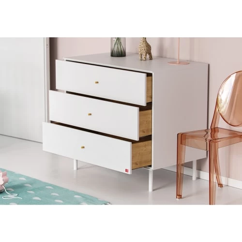 Sauthon Commodes Enfant Commode 3 Tiroirs Couleur Bois Et Blanc