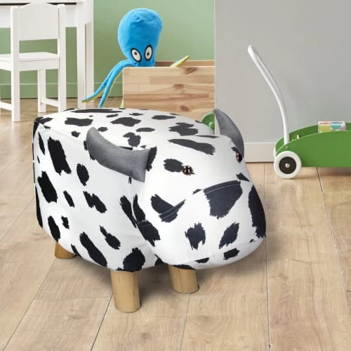 Le tabouret en forme de vache, au design adapté aux enfants, est dépourvu d’arêtes vives. Il impressionne par son siège bien rembourré avec un revêtement en tissu facile à entretenir et par sa fabrication solide. Grâce aux patins en feutre, le sol reste protégé des rayures même en cas de jeu intensif.
