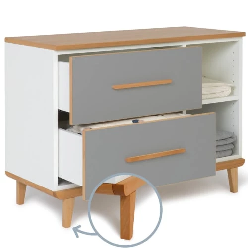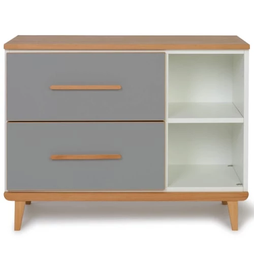 Grâce à ses 2 niches qui peuvent accueillir des cubes de rangement en bois massif (vendus séparément) et ses 2 tiroirs, elle est très fonctionnelle ! De plus, le système de fermeture “Soft Close”, doux et silencieux, assure un maximum de confort et de sécurité.